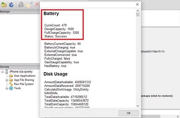 Nhược điểm: Để kiểm tra pin iPhone bằng iBackup Bot bạn cần sử dụng máy tính. Thao tác kiểm tra cũng tương đối phức tạp.