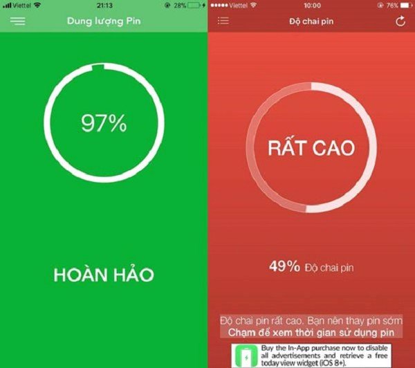 Ứng dụng ngay lập tức cho biết mức chai pin của iPhone