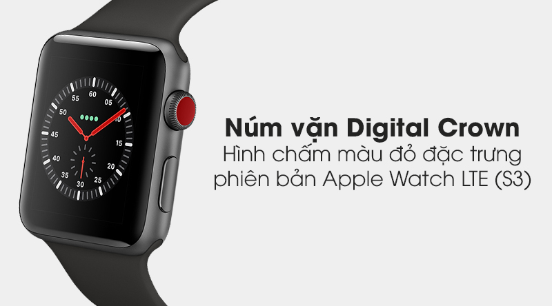 – Apple Watch LTE sẽ có núm vặn Digital Crown màu đỏ nguyên núm xoay đối với Series 3 và viền đỏ với Series 4 và Series 5.