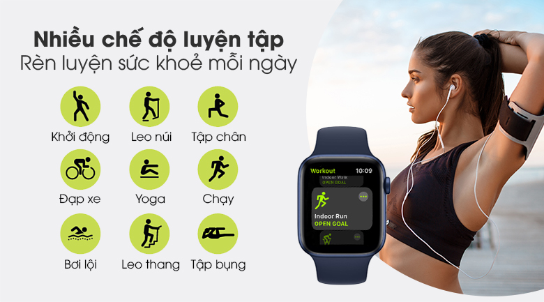 Nâng cao thể lực với nhiều bài tập thể thao từ cơ bản đến nâng cao được tích hợp sẵn trên đồng hồ như đạp xe, leo núi, bơi lội, yoga, chạy bộ,…
