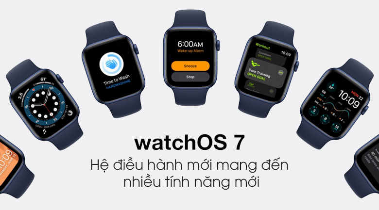 Apple Watch S6 chạy hệ điều hành WatchOS 7, hệ điều hành này mang đến nhiều tính năng mới như nhận biết rửa tay (Hand Washing), dịch vụ Fitness Plus hỗ trợ luyện tập thể thao, Family Setup,… Bên cạnh đó, người dùng cũng nên cập nhật iPhone lên iOS 14 để đảm bảo tương thích với watchOS 7.