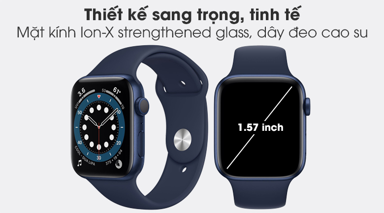 Apple Watch S6 40mm viền nhôm dây cao su xanh có thiết kế giống với các phiên bản trước đây, mang vẻ đẹp đơn giản, tinh tế và sang trọng. Màn hình OLED với kích thước 1.57 inch giúp hiển thị hình ảnh và thông tin rõ ràng và sắc nét. Dây đeo được làm từ chất liệu cao su có độ co dãn tốt và êm ái cho cổ tay người dùng khi đeo lâu.
