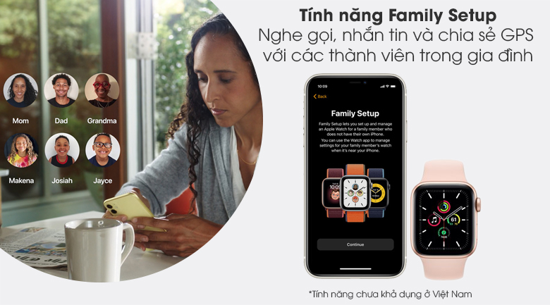 Tính năng Family Setup cho phép 1 tài khoản iCloud có thể quản lý nhiều chiếc đồng hồ thông minh Apple khác nhau, thuận tiện trong việc chăm sóc trẻ em và người già thông qua các tính năng: theo dõi sức khỏe, định vị trẻ em, phát hiện té ngã,…