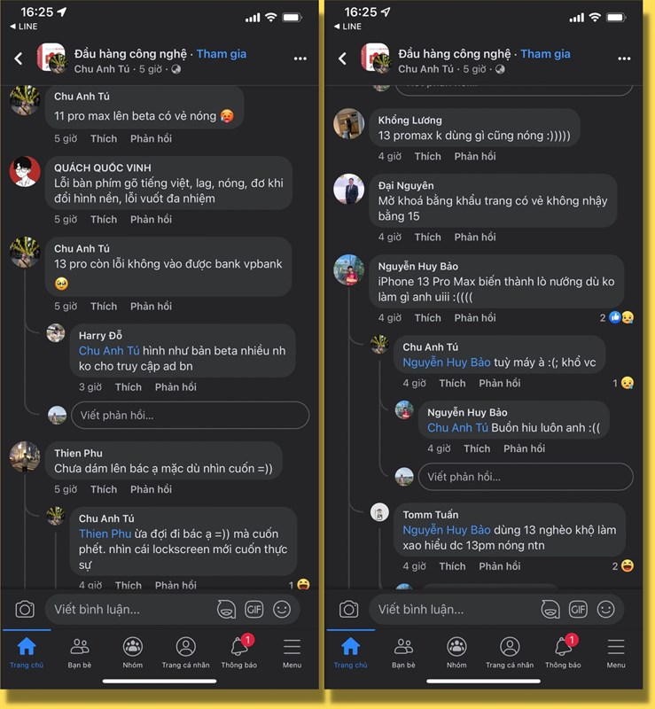 Chưa dừng lại ở đó, mình cũng dạo một vòng trên những diễn đàn, hội nhóm công nghệ thì thấy đa phần mọi người khi cập nhật iOS 16 Beta 1 còn gặp lỗi nóng máy, không vào được ứng dụng ngân hàng hoặc trải nghiệm không được mượt, gặp tình trạng văng ứng dụng đột ngột,.
