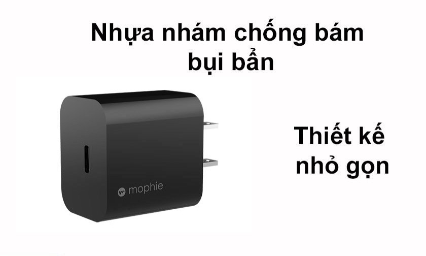 Hãng sản xuất đã thiết kế cho sạc Mophie Power Delivery 18W USB-C sử dụng chất liệu nhựa nhám tổng hợp cao cấp hạn chế nứt vỡ khi va đập. Lớp sơn đen nhám được bao phủ bên ngoài sản phẩm tạo nên sự sang trọng và tinh tế cho bộ sạc. Hơn thế nữa, lớp vỏ đen nhám có tính năng chống bám vân tay và mồ hôi giúp cho sạc của bạn luôn sạch sẽ mọi lúc.