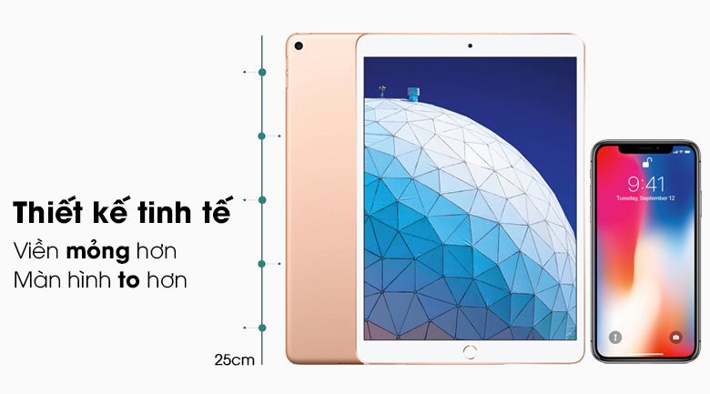 iPad Air 3 10.5 inch Wifi 64GB không đi theo thiết kế tràn viền như trên smartphone nhưng điều đó lại mang lại cho người dùng cảm giác cầm nắm tốt hơn.