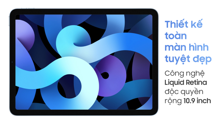 iPad Air 4 Wifi 256GB 2020 trang bị màn hình Liquid Retina 10.9 inch, tích hợp công nghệ True Tone cho khả năng hiển thị gần như hoàn hảo với màu sắc gốc, kết hợp cùng dải màu CPI-P3 chuẩn điện ảnh Hoa Kỳ, mang lại những trải nghiệm hình ảnh đỉnh cao với chất lượng màu sắc vô cùng trung thực.
