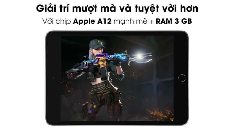 iPad Mini 7.9 inch Wifi Cellular 64GB (2019) được Apple trang bị hiệu năng rất ấn tượng với con chip Apple A12 cùng RAM 3 GB và 64 GB bộ nhớ trong.