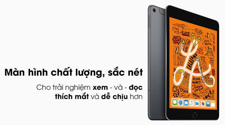 Bạn sẽ có cho mình một chiếc iPad Mini 7.9 inch Wifi Cellular 64GB (2019) với kích thước màn hình 7.9 inch không quá lớn và thậm chí bạn có thể cho chiếc iPad Mini 7.9 inch Wifi Cellular 64GB (2019) vào túi quần của mình. Độ phân giải của máy là 1536 x 2048 pixels mang lại trải nghiệm làm việc giải trí xem phim tuyệt vời, đặc biệt là khi thư giản cùng với gia đình.