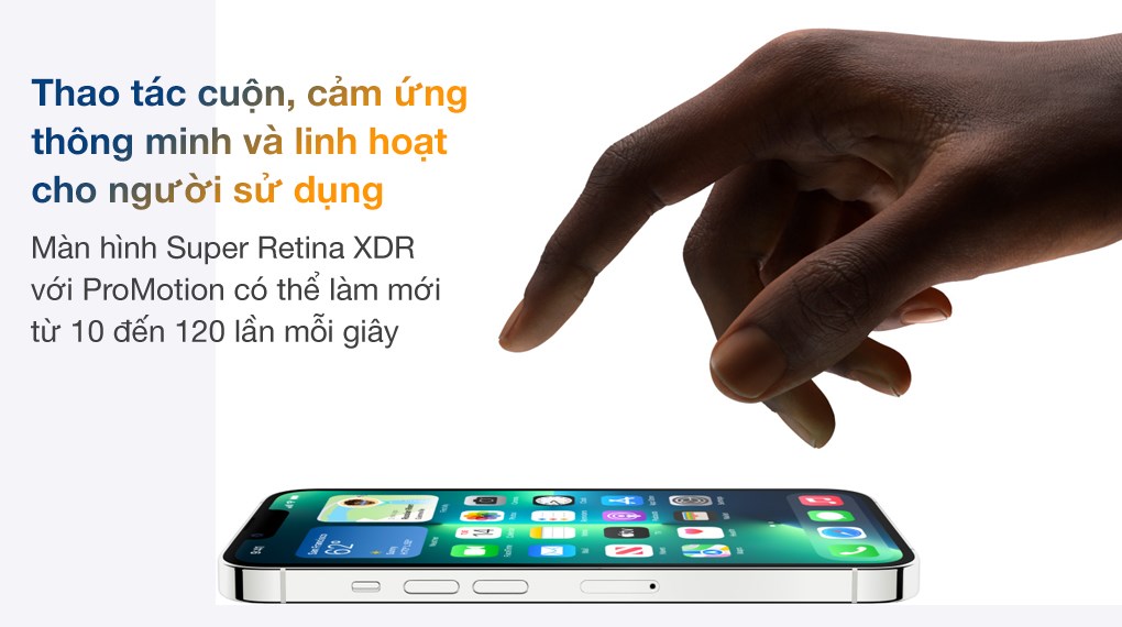 Không chỉ mãn nhãn với màn hình Super Retina XDR, iPhone 13 Pro Max còn được trang bị công nghệ ProMotion, giúp mọi trải nghiệm cảm ứng từ vuốt, chạm, cuộn trang cho đến chơi game đều mượt mà một cách đáng kinh ngạc.