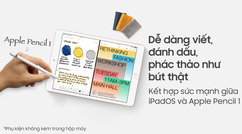 Bên cạnh đó, iPad 8 Wifi 4G (2020) có thể hoạt động vô cùng mượt mà với bút Apple Pencil giúp nhận diện chữ viết tay và chuyển thành văn bản vô cùng nhanh và chính xác, hay bàn phím Smart Keyboard giúp bạn trong các công việc văn phòng như soạn thảo văn bản, xử lý các bảng tính chuyên nghiệp như trên máy tính cá nhân.