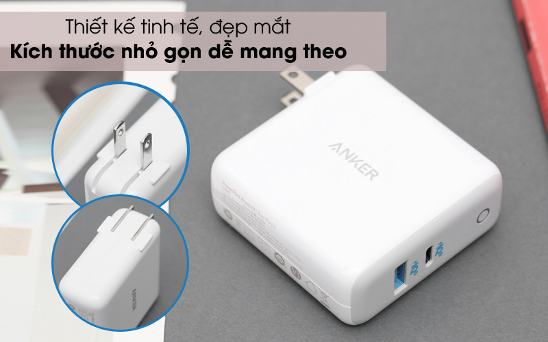 Sạc 2 cổng USB Type C PD 60W Anker PowerPort Atom III A2322 Trắng thiết kế nhỏ nhắn, tinh tế, dễ đặt gọn trong túi xách của bạn