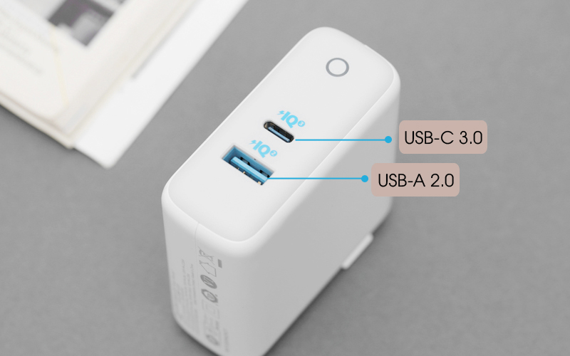 Adapter trang bị 2 cổng sạc thông minh, tiện dụng: 1 cổng sạc USB-C 3.0 và 1 cổng USB-A 2.0